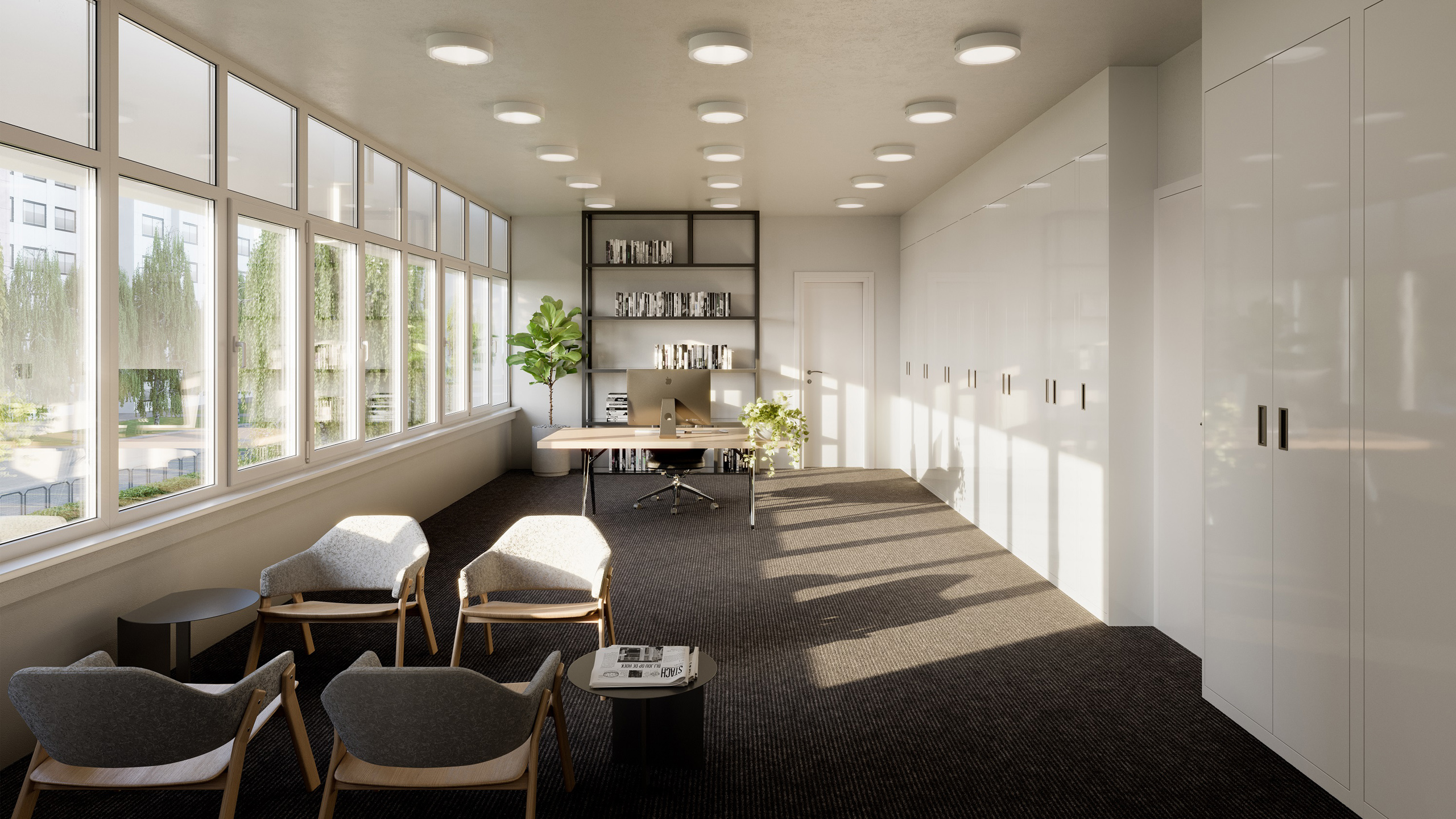 Projekt se sastoji od uredskih prostora smještenih u tri poslovne zgrade. Svaka cjelina sastoji se od ulaza sa stubištem, pretprostora (lobby-a) i hodnika, uredskih prostorija, čajne kuhinje i sanitarnog čvora. Navedene cjeline također je moguće spojiti u jednu cjelovitu i funkcionalnu prostornu cjelinu. Pored navedenih uredskih prostora osigurana su i pripadajuća parkirna mjesta u neposrednoj blizini samog objekta.